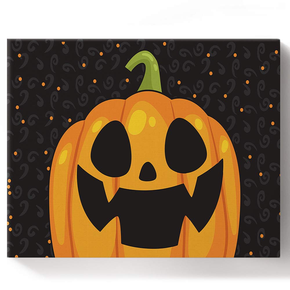 Amazon Com Flouky Diy Oil Painting Paint By Number Kit Halloween Cartoon Cute Pumpkin Canvas Paint By Numbers For Adults Easy Drawing With Brushes And Acrylic Pigment 12x16 Inch